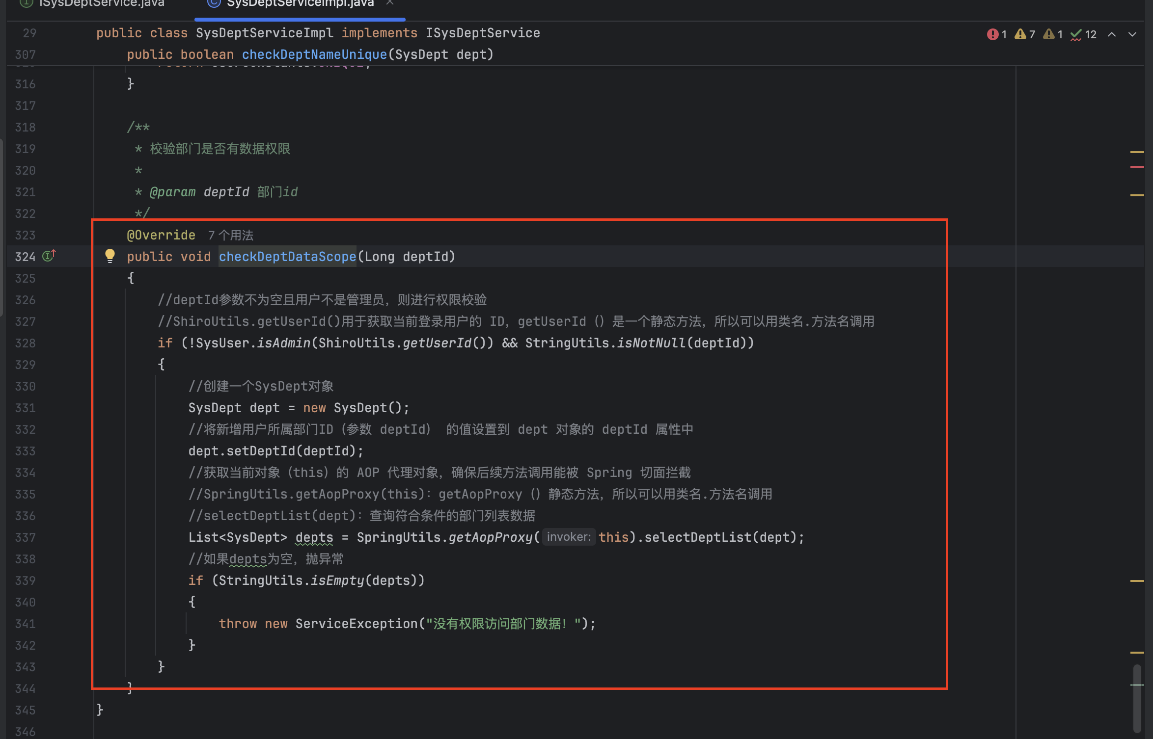 3.1controler层—deptService.checkDeptDataScope(user.getDeptId());